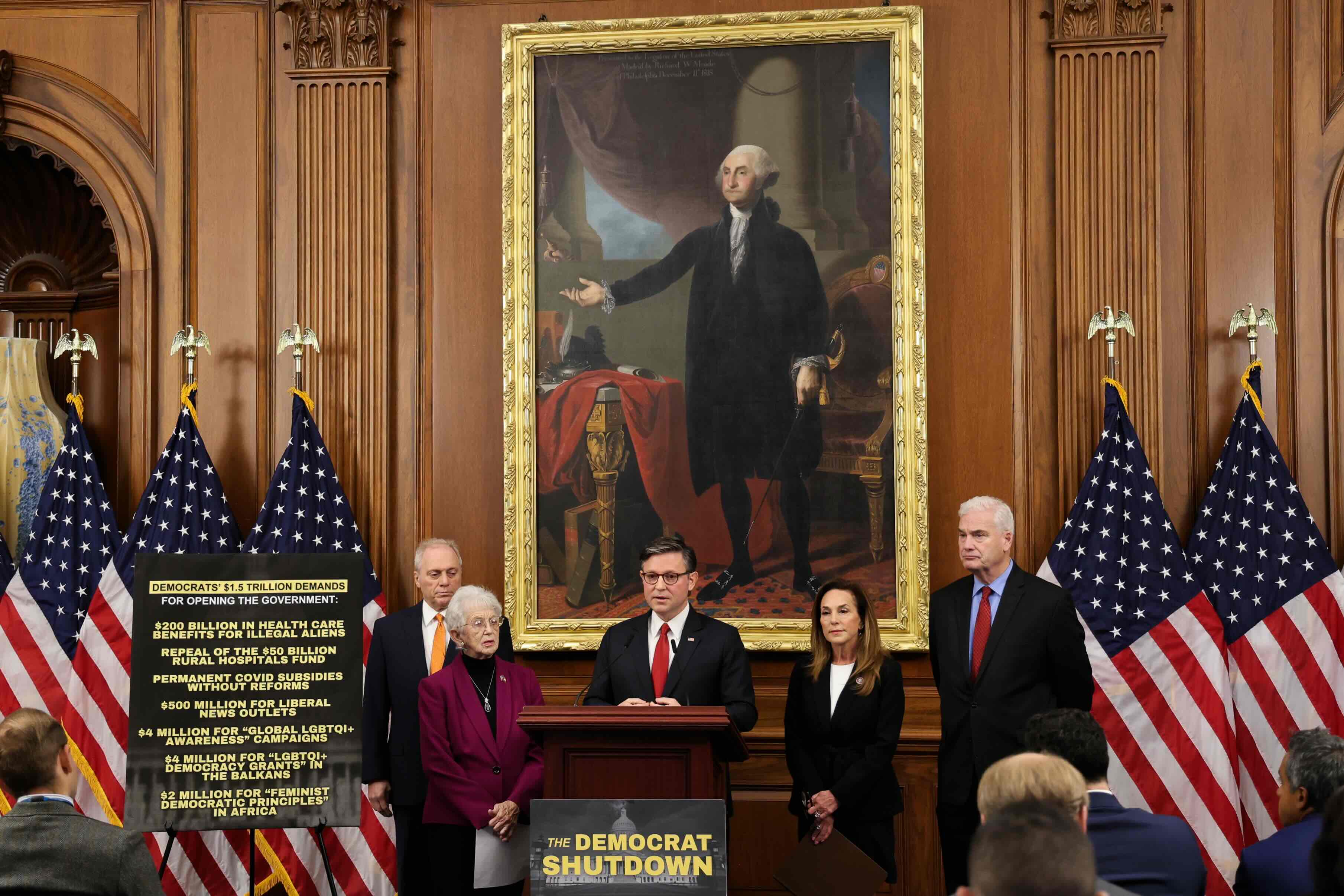 “They want to spend $2.9 million of your dollars for desert locust risk reduction in the Horn of Africa. $2 million for organizing for feminist democratic principles in Africa. We are not doing that,” Speaker Johnson said. “These are unserious proposals from unserious people. They are playing games while real Americans are being harmed adversely by the shutdown.”