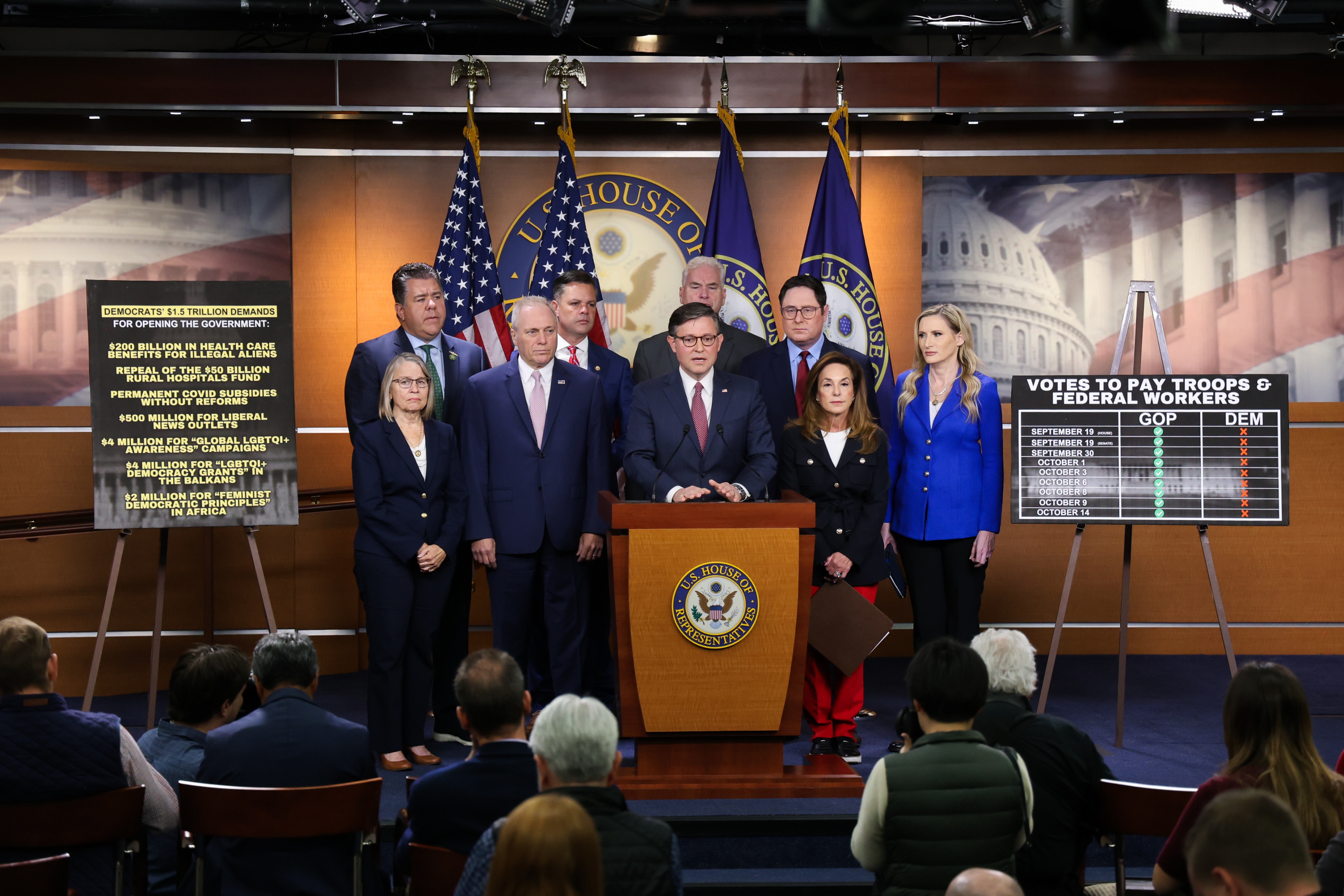 “And here are the indisputable facts of this shutdown. Republicans want to pay the troops, and we have shown that with our actions and our votes now nine times,” Speaker Johnson said. “And the Democrats want to use them as hostages to extort $1.5 trillion in new unserious partisan spending that we just won’t go along with.”