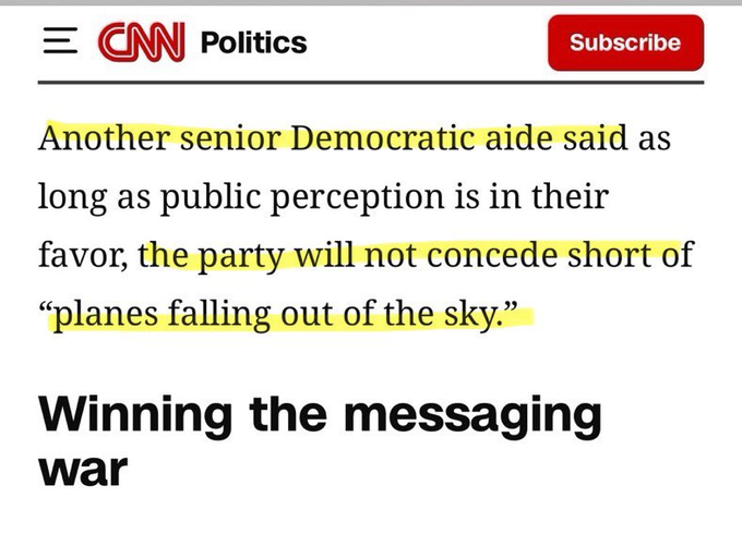 One senior Democratic aide even said they won’t concede short of “planes falling out of the sky.”