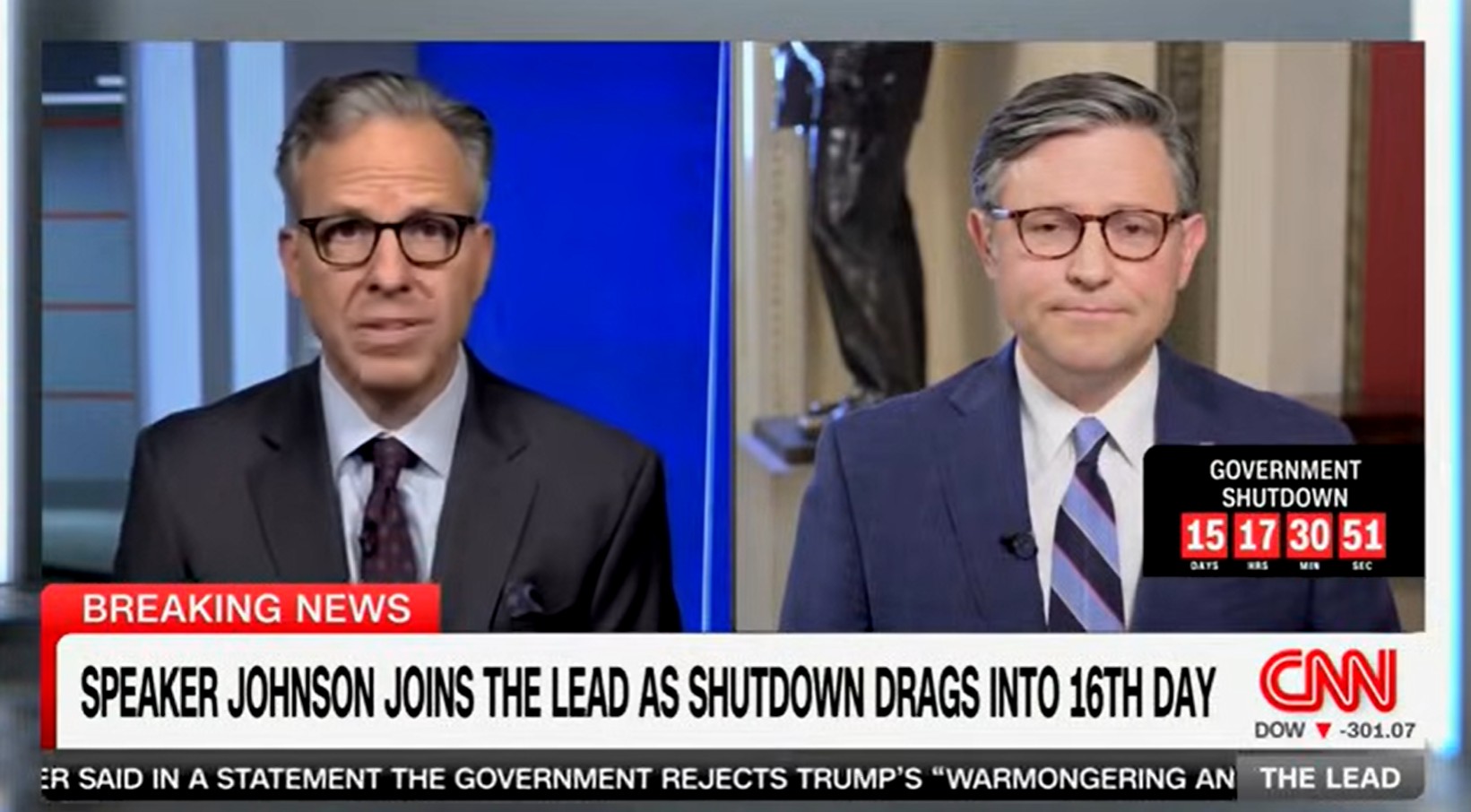 WASHINGTON — Today, Speaker Johnson joined Jake Tapper on CNN’s The Lead and Laura Ingraham on Fox News’ The Ingraham Angle to discuss Senate Democrats repeatedly voting against paying U.S. troops and reopening the federal government to satisfy their Far-Left base.