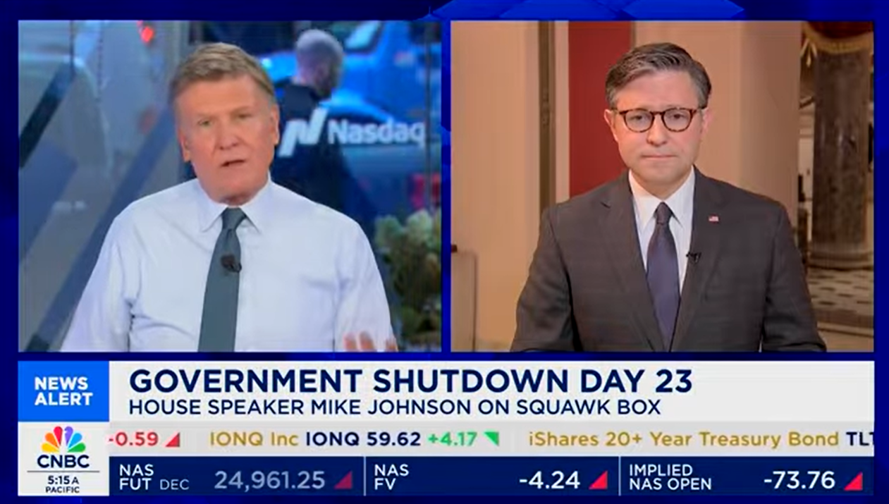 WASHINGTON — This morning, Speaker Johnson joined Joe Kernen, Becky Quick, and Andrew Ross Sorkin on CNBC’s Squawk Box to discuss Congressional Democrat leaders admitting they are intentionally inflicting “suffering” on American families and using that pain as “leverage” in this shutdown.