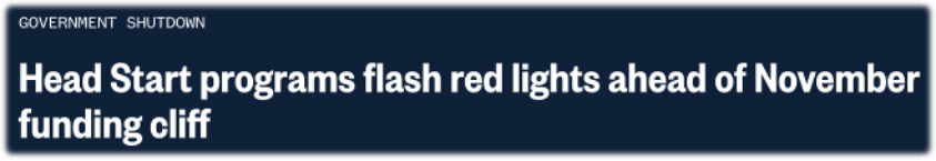 Notices have begun going out to Head Start programs across the country, warning that their grants could be in jeopardy if the shutdown continues into November — potentially throwing tens of thousands of preschool children and their families into limbo.
